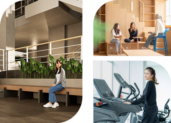 Kyo Society menghadirkan fasilitas lengkap untuk mendukung gaya hidup sehat, produktif, dan seimbang. Mulai dari co-working space, gym, hingga communal lounge.